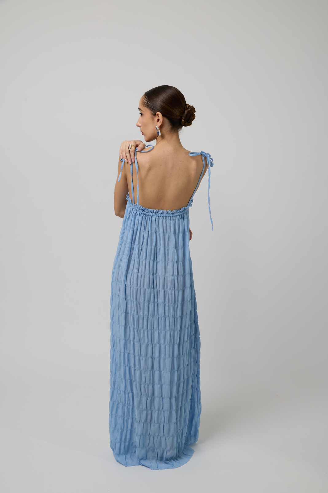 Celeste is made from a beautifully textured fabric. Lightweight and airy, it’s perfect for warm days, holidays, and easy summer dressing. The dress features adjustable straps that can be worn up or styled off the shoulder, allowing you to adapt the look to suit your preference.